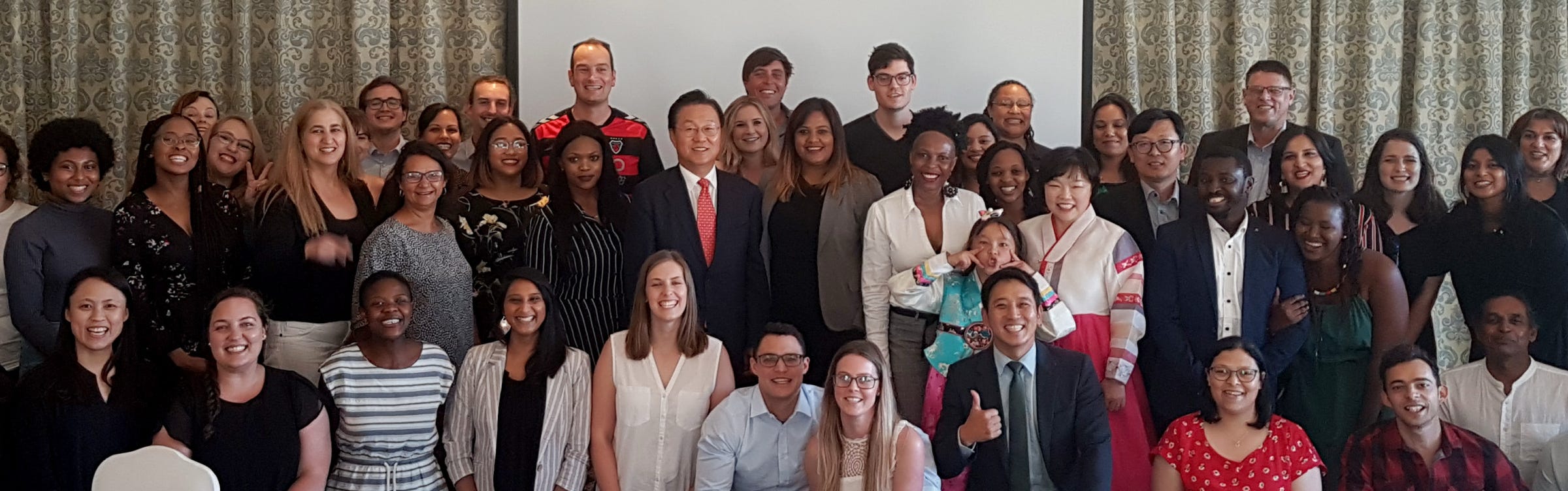 The Korean Ambassador to South Africa, His Excellency Ambassador PARK Jong-Dae together with GoldKey directors JUNG YunOck & Clifford T SMITH along with past, present and future ESL teachers at the Annual “Remember Korea” Banquet held every November in Cape Town, South Africa.